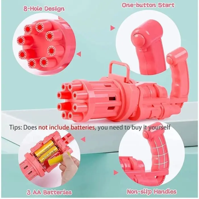 CARACTERISTICAS: - Burbujero Automático: Solo Aprieta Un Botón Y La Pistola Comienza A Disparar Burbujas.- Funciona Con 3 Pilas Aa (No Incluidas).- Colores: Dorado Y Negro. Se Entrega Surtido segun disponibilidad de stock.